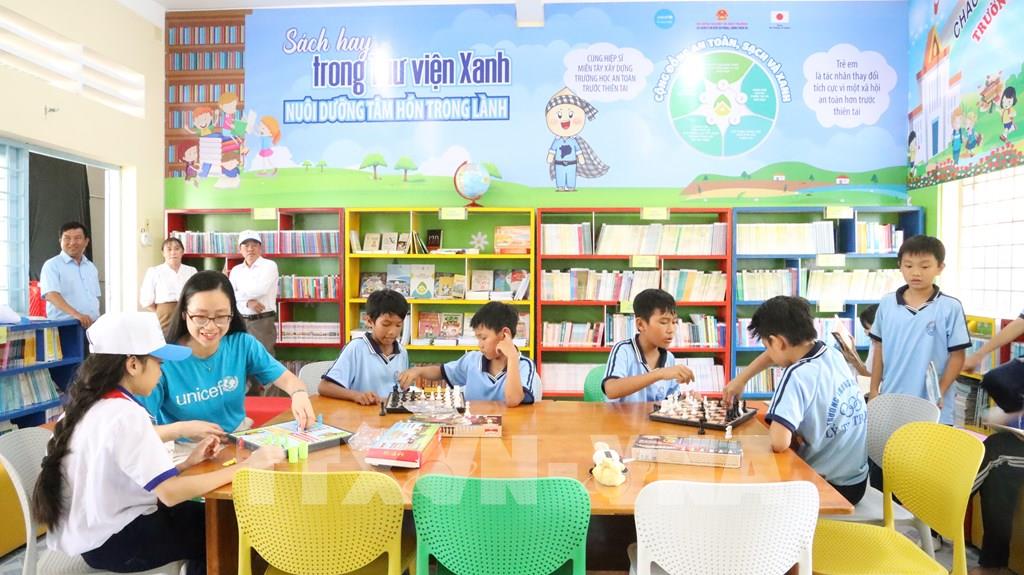 Mô hình đã hỗ trợ cải tạo lắp đặt "Thư viện xanh" thân thiện với trẻ em tại trường THCS Lý Tự Trọng. Ảnh TTXVN phát