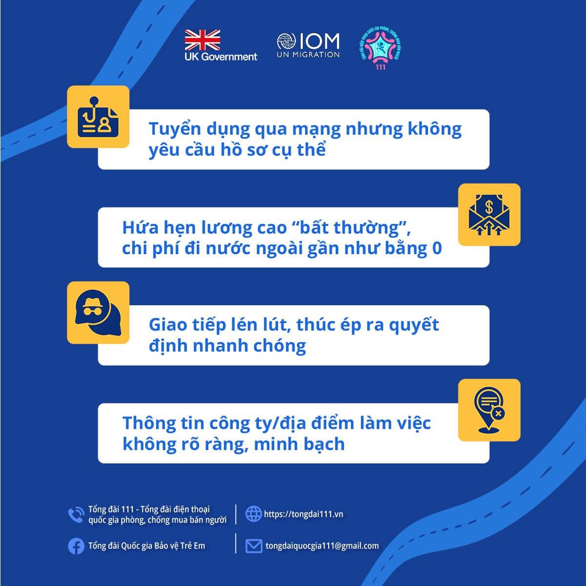 ✔️ Nếu nghi ngờ hoặc phát hiện lừa đảo, hãy gọi Tổng đài 111 – miễn phí 24/7: Đây là tổng đài điện thoại quốc gia, không chỉ trẻ em mà cả người lớn cũng có thể gọi để được tư vấn và hỗ trợ khi liên quan đến mua bán người.