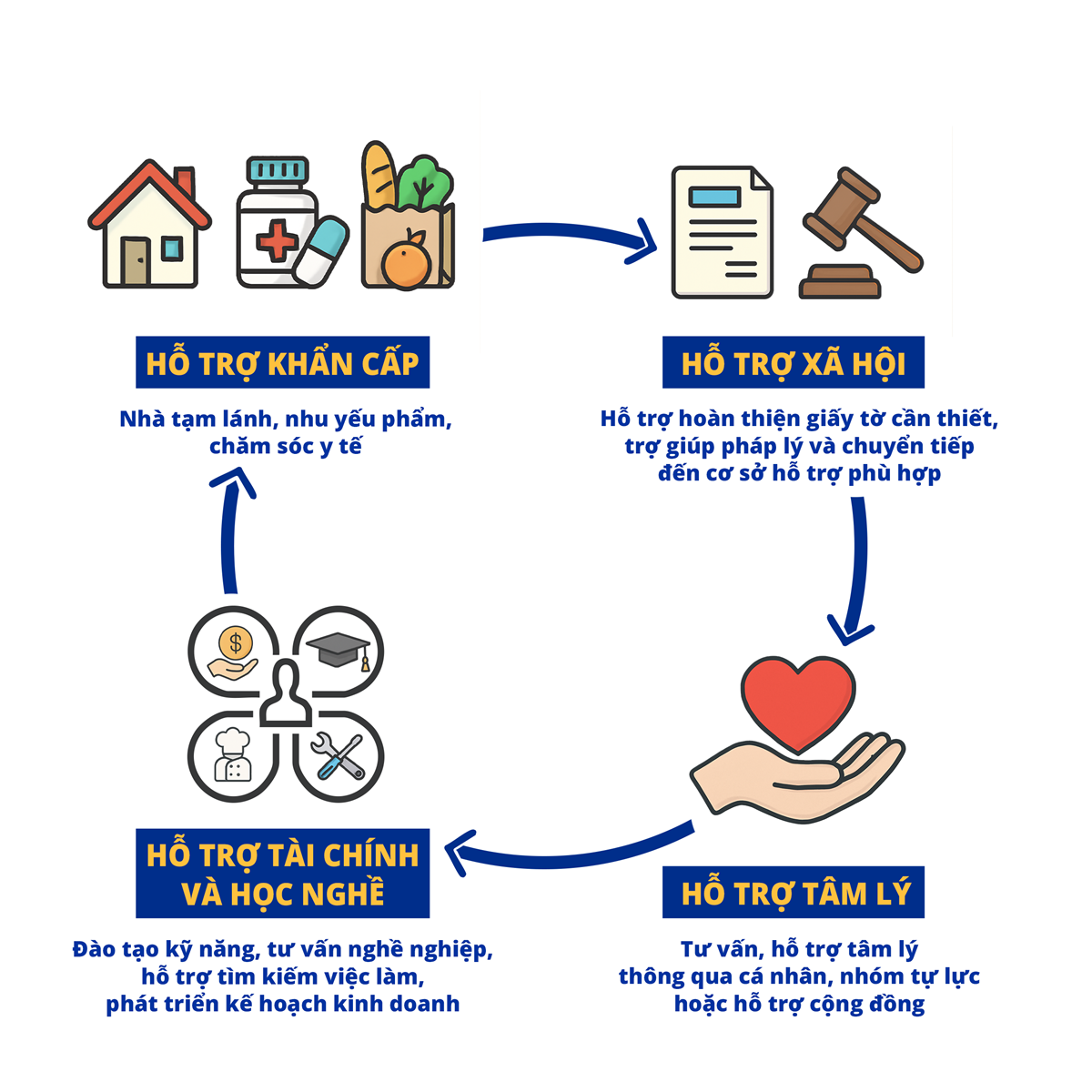 - Hỗ trợ nạn nhân trở về tái hòa nhập cộng đồng