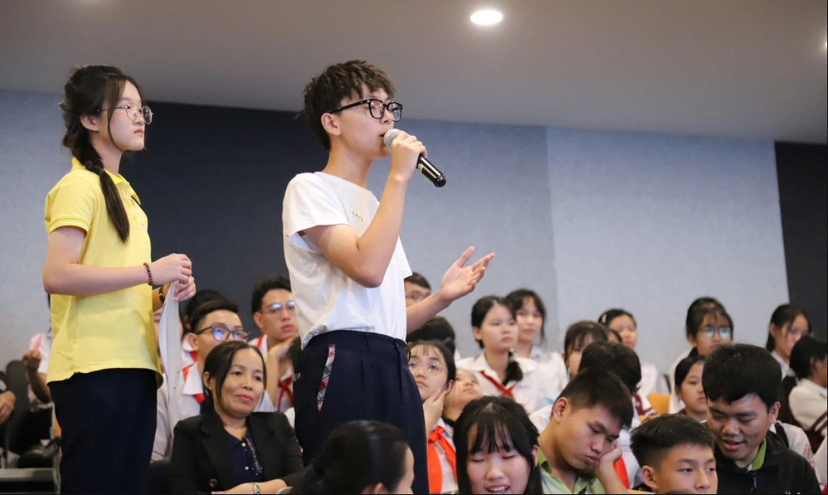 Một em đặt câu hỏi phản biện cho các chuyên gia (Ảnh: Diệu Linh).