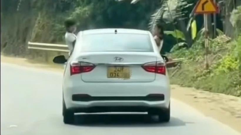 Trước đó, mạng xã hội lan truyền đoạn video ghi lại cảnh xe ô tô BKS 24H-034.xx đang lưu thông nhưng có 2 trẻ em đu bám ở cửa xe. Ngay sau khi tiếp nhận thông tin, Đội CSGT đường bộ số 1 đã nhanh chóng xác minh và mời lái xe đến làm việc.